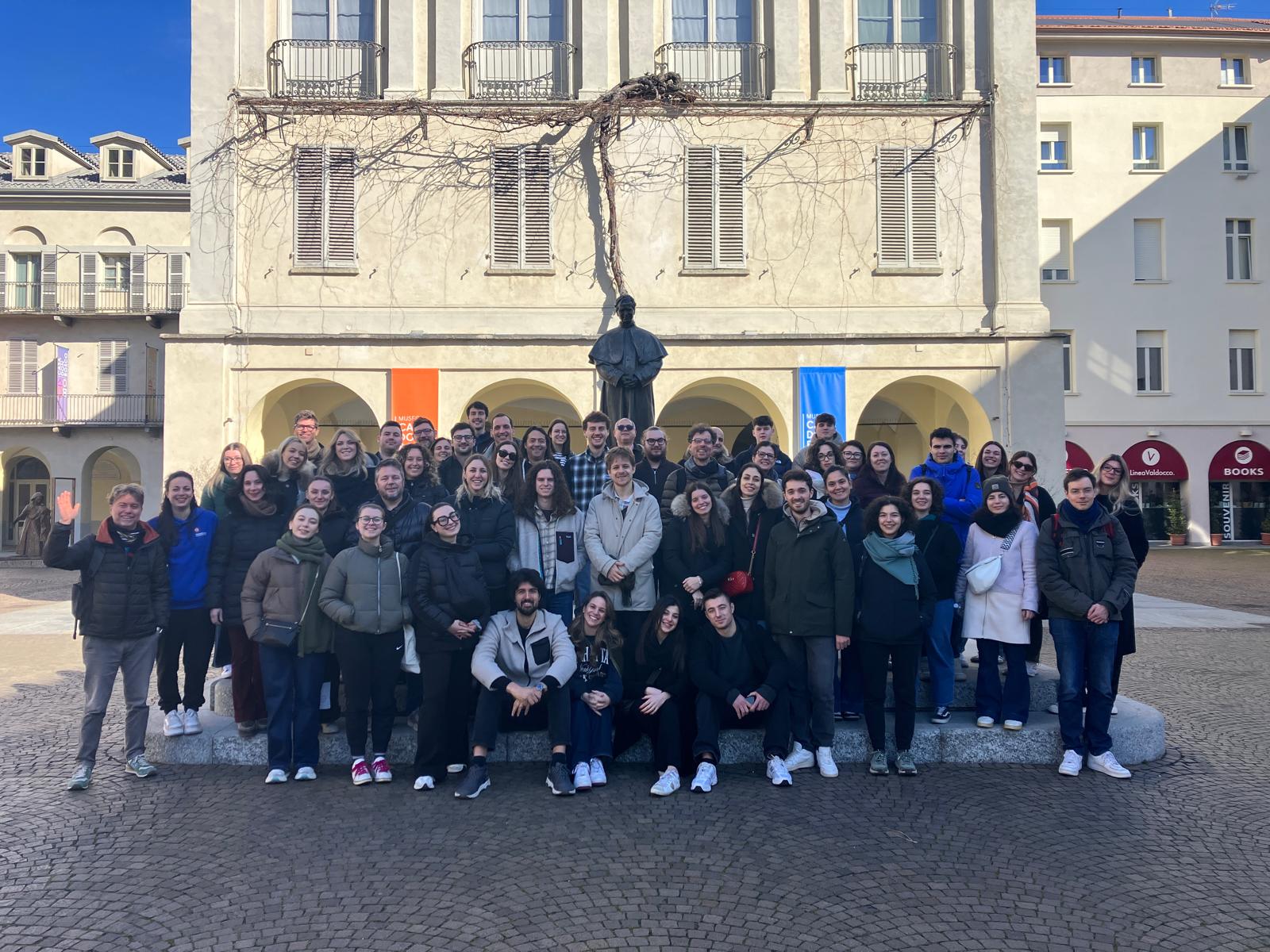 Il gruppo, accompagnato da don Emanuele, Delegato di Pastorale Giovanile, ha iniziato il percorso al Colle Don Bosco, nei luoghi dell’infanzia e dell’adolescenza del Santo. È stato un primo passaggio fondamentale: lì dove tutto è nato, tra una famiglia semplice, una fede concreta e una povertà che non ha impedito a un ragazzo di coltivare sogni grandi. Visitare la casetta natale e i campi che hanno visto crescere Giovanni Bosco ha aiutato i partecipanti a comprendere come il carisma salesiano non sia frutto di una teoria, ma di una storia reale, fatta di fatica, intuizione e Provvidenza.