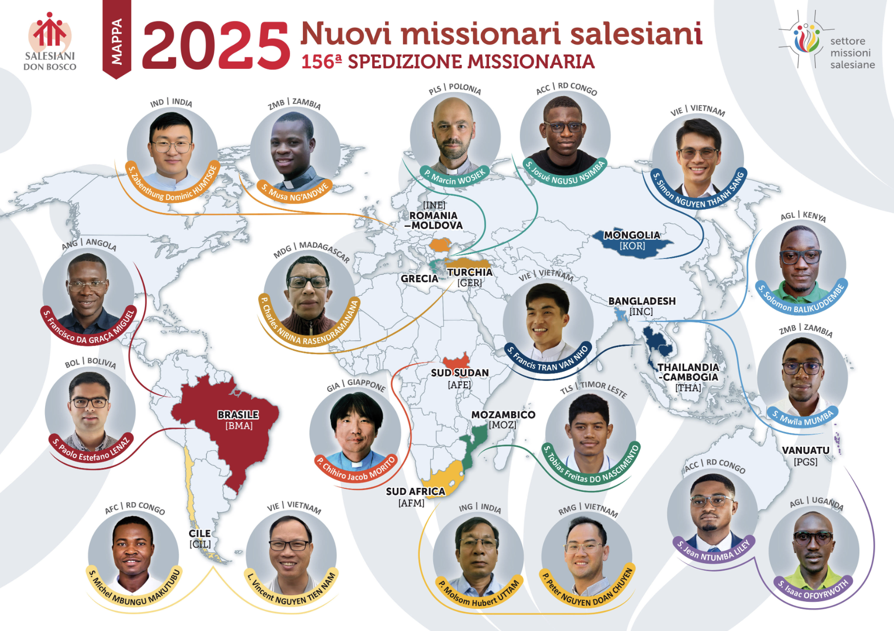 In occasione del 150° anniversario della prima spedizione missionaria salesiana, la loro partenza è un segno che lo spirito di Don Bosco continua ad essere vivo e fecondo. Come lui ci ha insegnato, “lasciare tutto” per seguire il Signore significa uscire dalle proprie sicurezze e aprirsi alla ricchezza di altri popoli, culture e tradizioni.